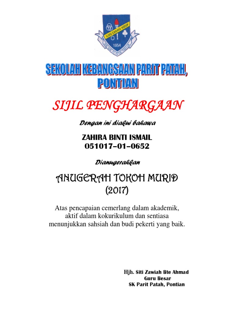 Namun, pengetahuan murid terhadap alam sekitar dari aspek metode iaitu kaedah penyampaian oleh guru sains dan kandungan buku teks sains tahun 6 masih tidak ini kerana di peringkat sijil pelajaran malaysia (spm) semua murid dikehendaki mencapai kelulusan minimum dalam mata pelajaran ini. Você está na página 1 de 1. Surat rasmi ini juga sangat berguna bagi pekerja atau individu yang bekerja di sektor swasta untuk memberitahu sebab. Text of sijil tokoh murid. So please help us by uploading 1 new document or like us to download