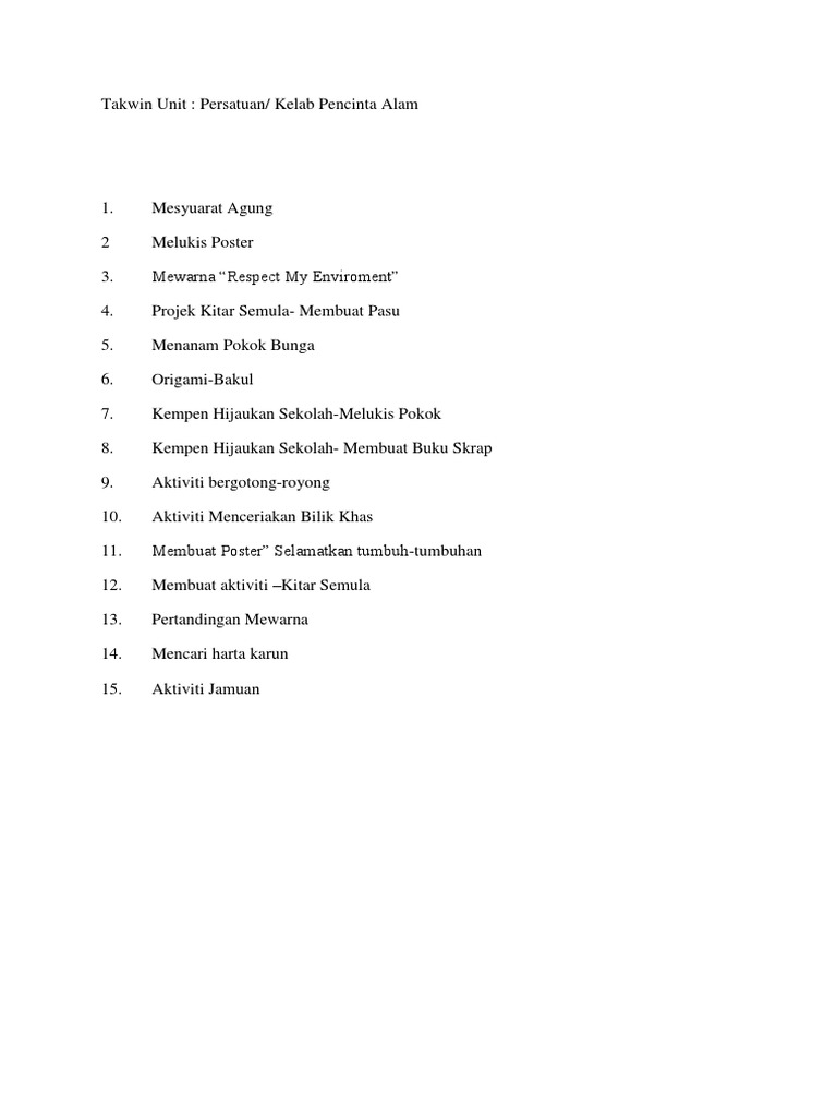 In sha allah berguna kepada rakan guru. 7.3 objektif kelab akan tercapai dengan gabungan aktiviti. Kelab pencinta alam sekolah telah ditubuhkan pada 22 jun 2012. Use the download button below or simple online reader. Kelab juga boleh memperolehi kewangan melalui aktiviti.